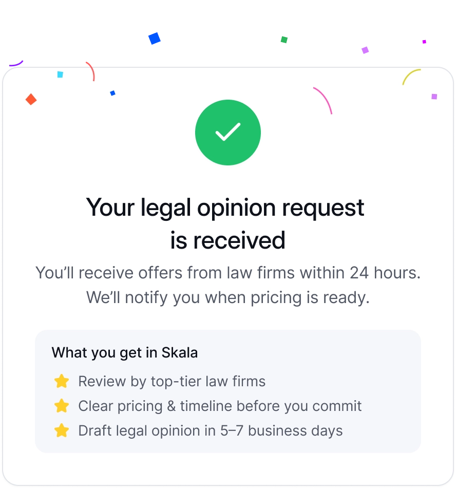 A legal opinion is a formal legal statement signed by a qualified lawyer that addresses a specific legal question or situation. For example, crypto exchanges commonly require a legal opinion as part of the listing process to confirm that a project’s activities comply with the laws of the selected jurisdiction. For more information, check out this article.